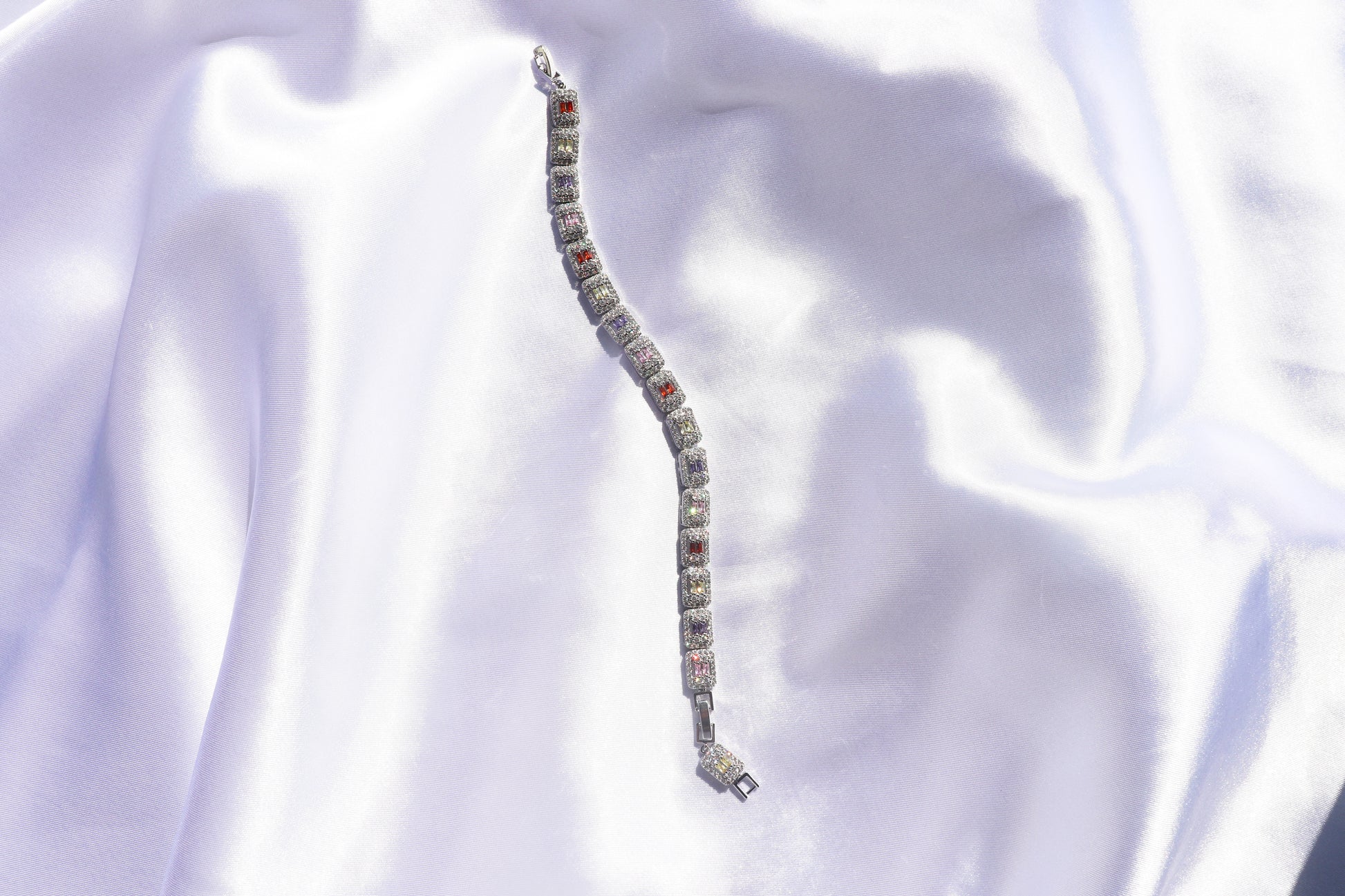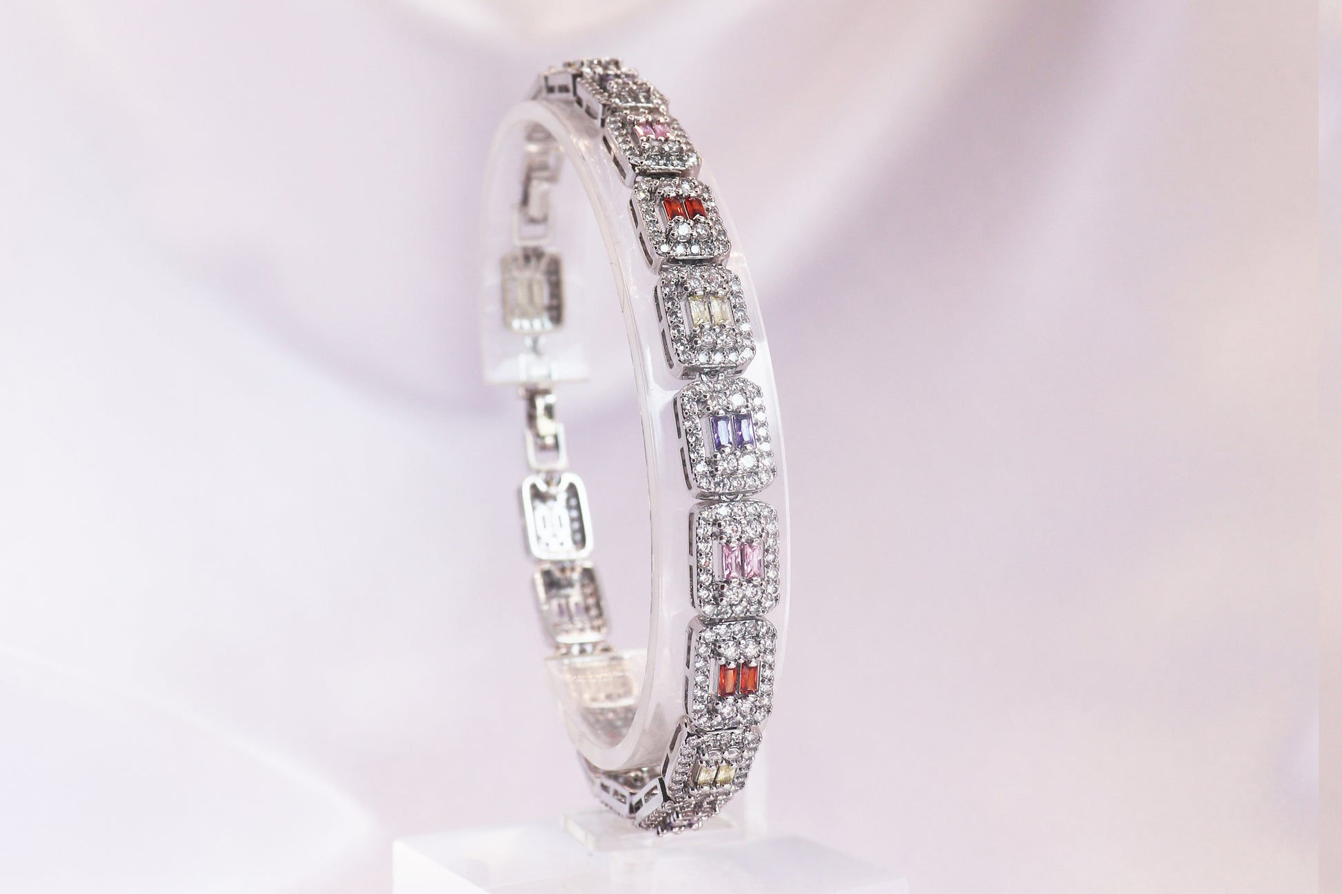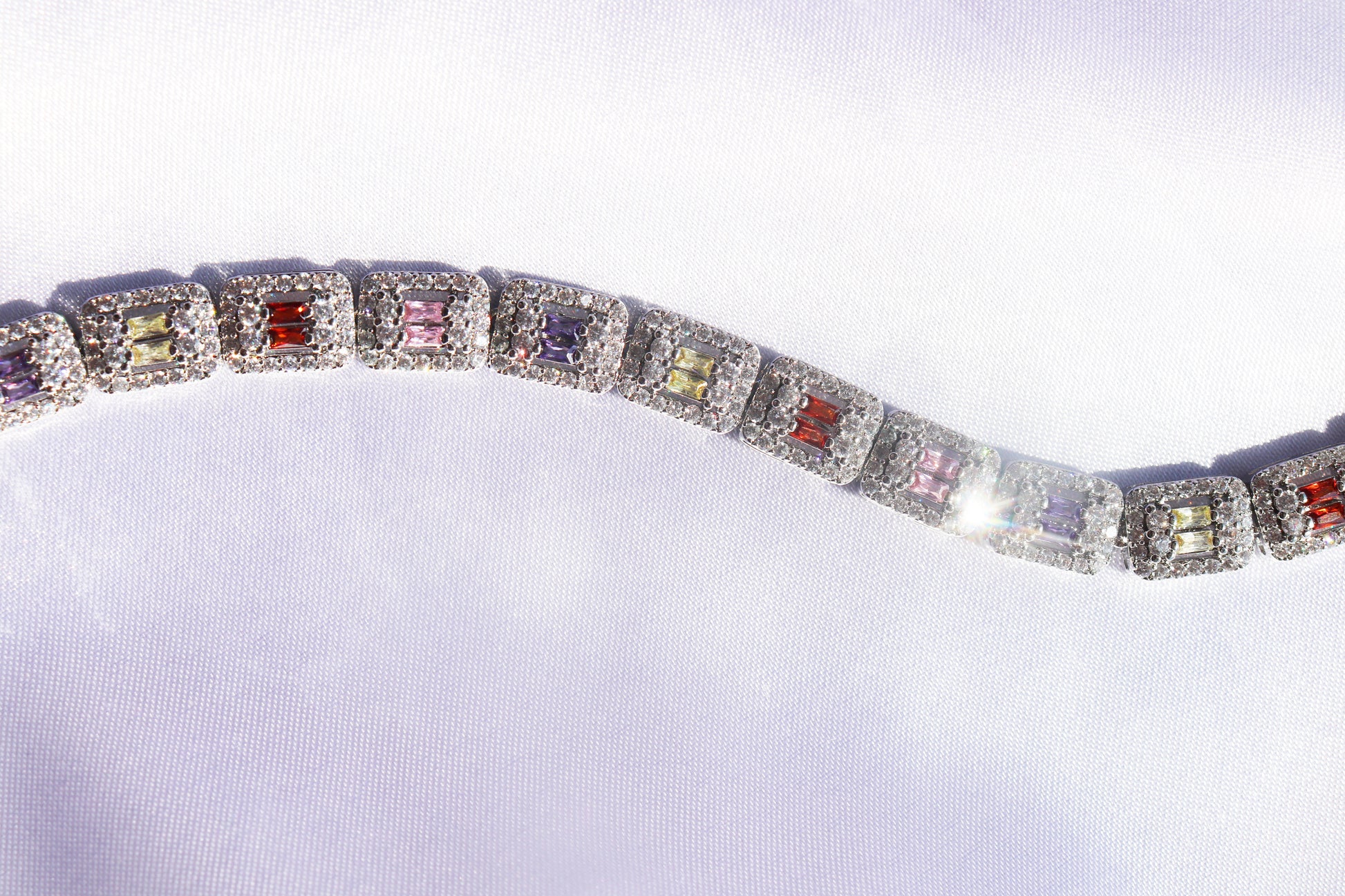 🌟 Elevate your style with our stunning multicolor tennis bracelet, a dazzling testament to vibrant elegance. Whether you're adding a pop of color to your everyday attire or seeking the perfect accessory for a special occasion, this bracelet effortlessly combines sophistication and playfulness.