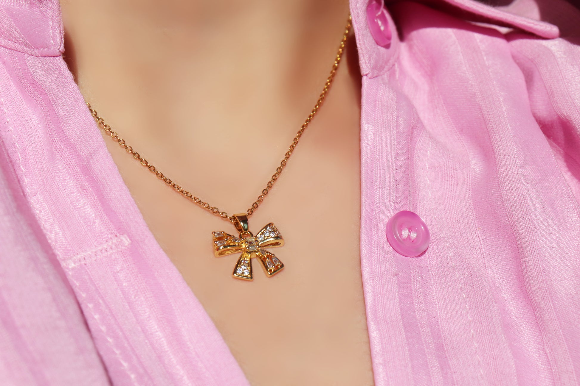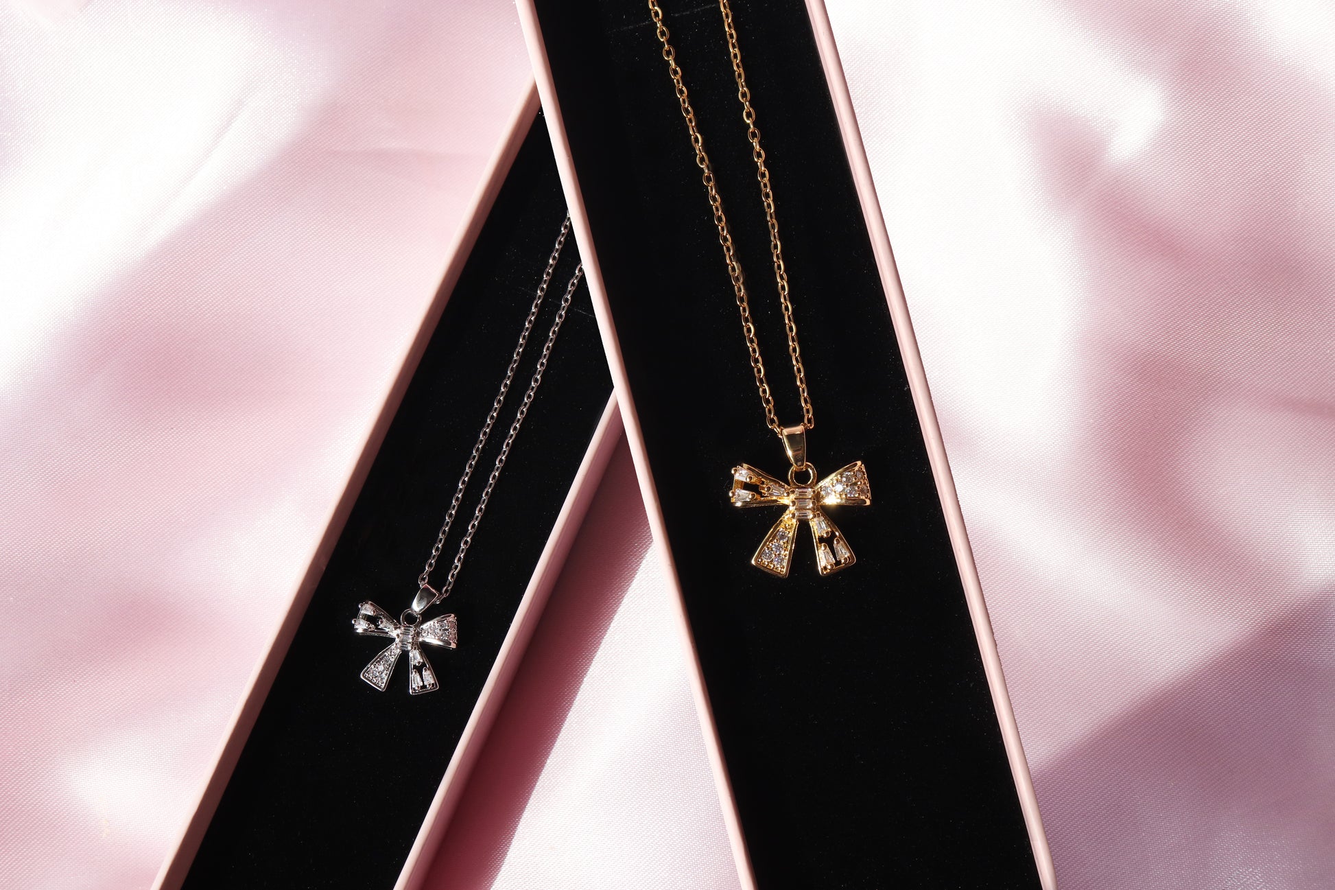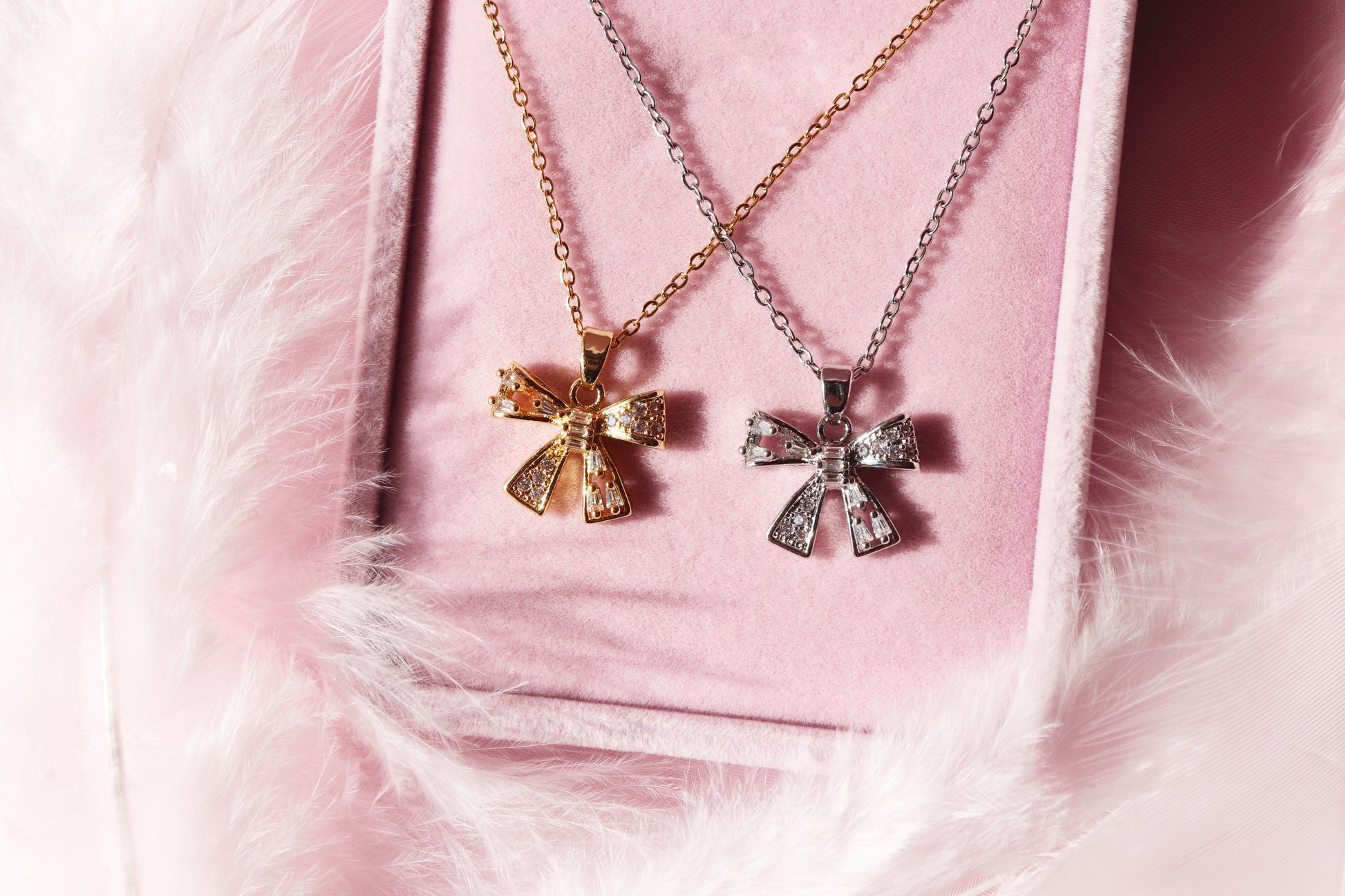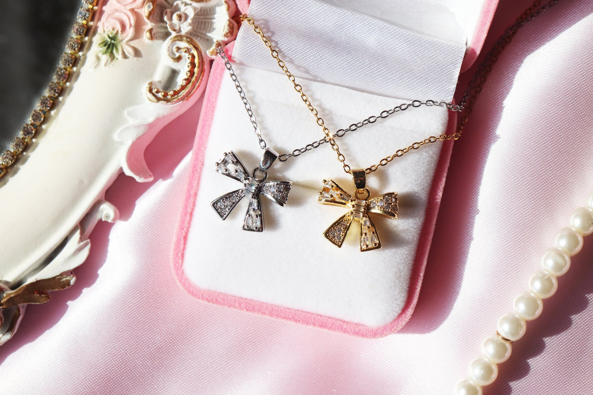 🎀Wrap yourself in adorable charm with our ribbon pendant necklace! This darling accessory is perfect for adding a dash of cuteness to any outfit, whether it's a casual day out or a special occasion. Wear it solo for a dose of whimsical charm or layer it up for an irresistibly cute look. With its endearing design and timeless appeal, our ribbon pendant necklace is sure to steal hearts wherever you go! ✨