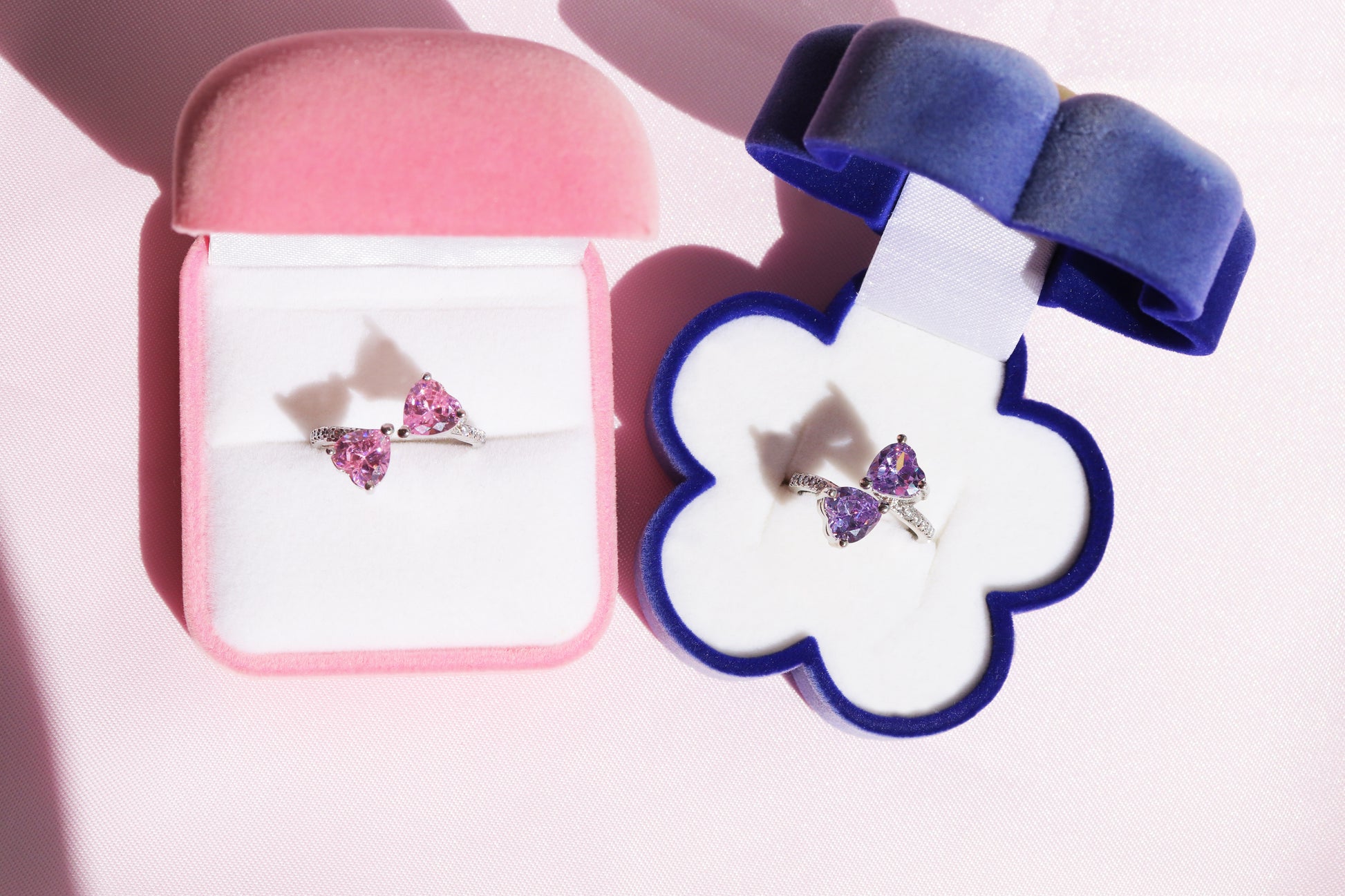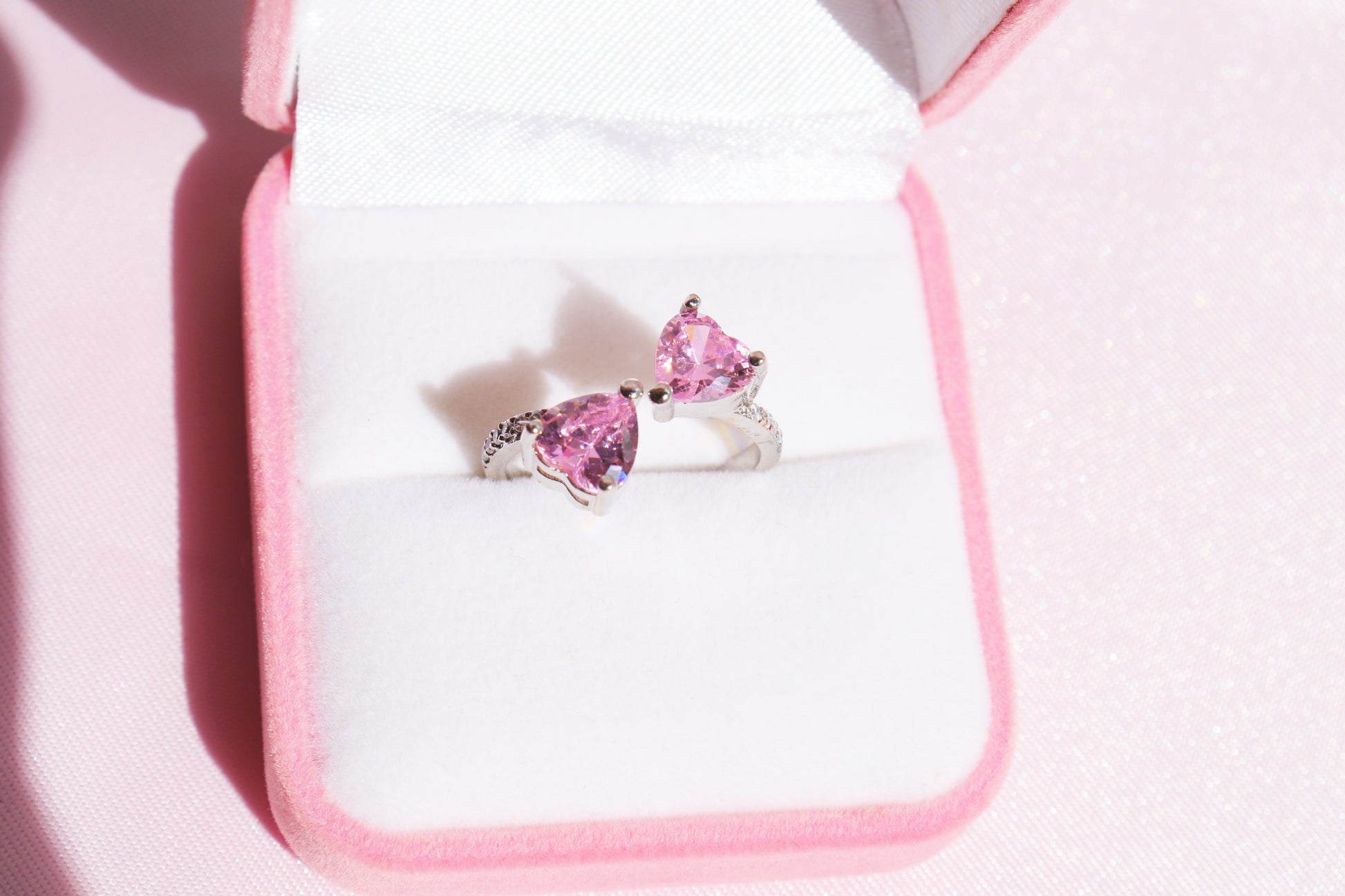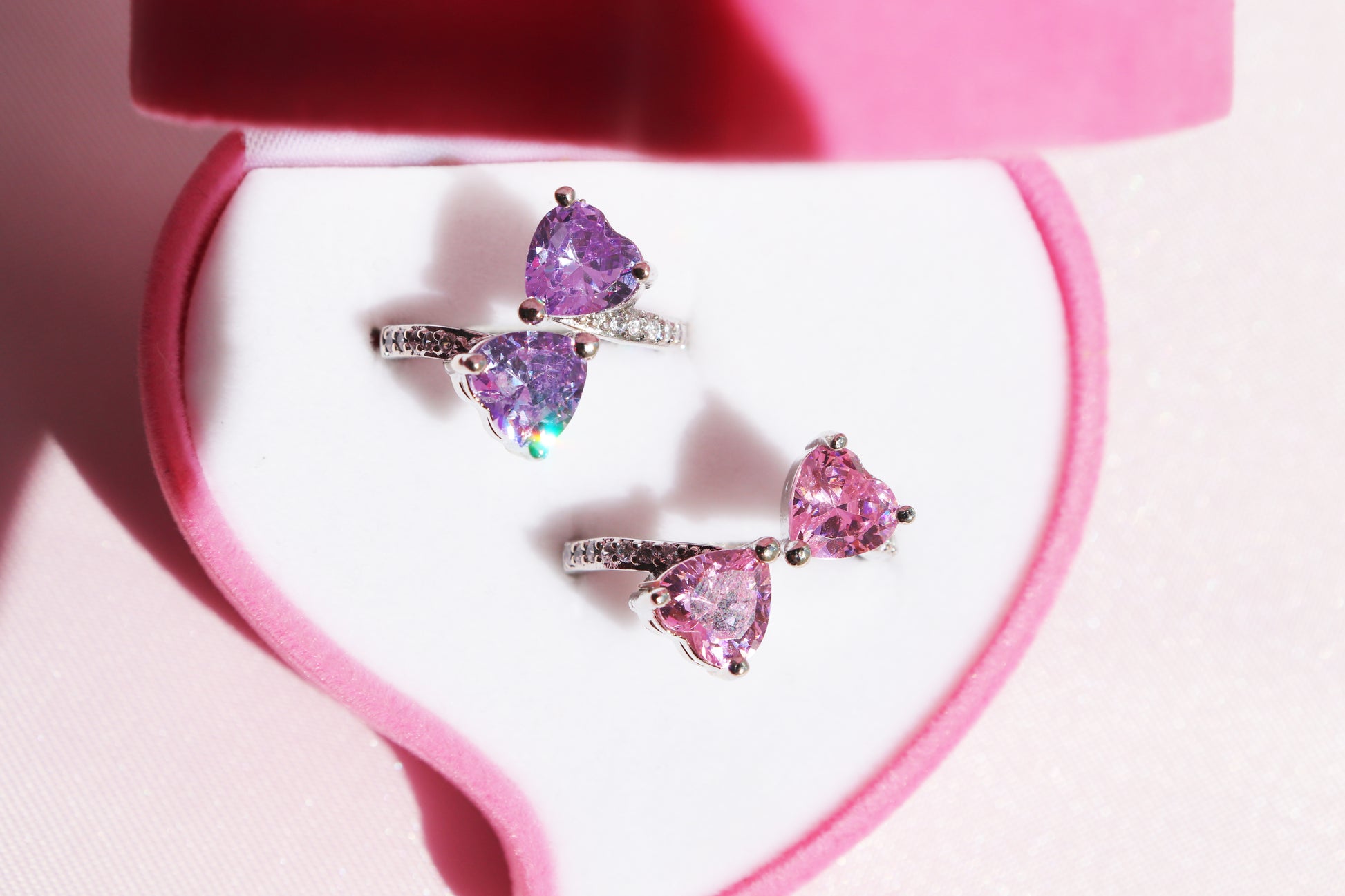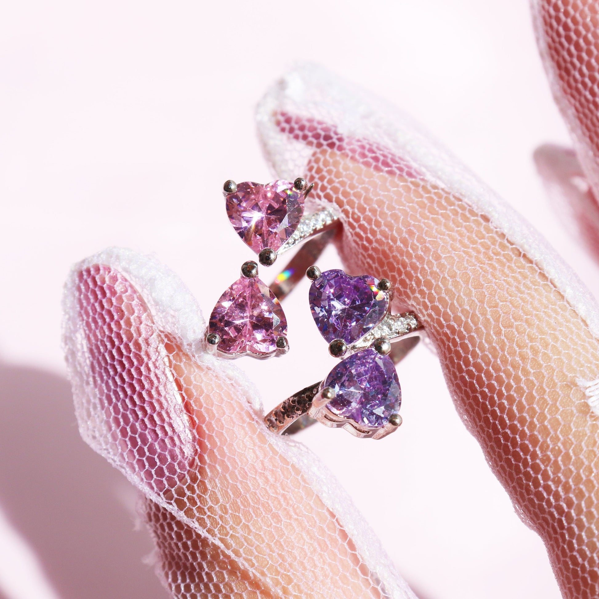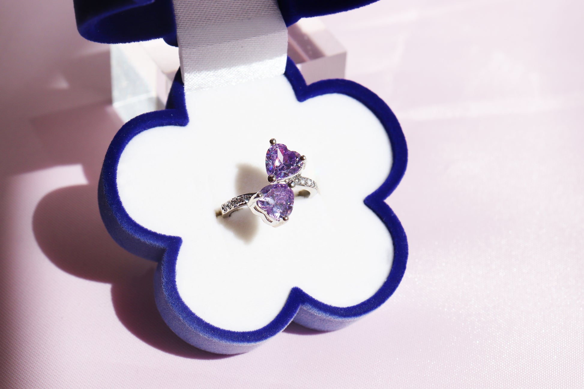 💗💜 Experience the enchanting fusion of love and beauty with our Pink and Purple Double Heart Ring. This exquisite piece features dual heart motifs in delicate shades of pink and purple, symbolizing both affection and individuality. Adorn your finger with the Pink and Purple Double Heart Ring and let your style reflect the depth and brilliance of your emotions.