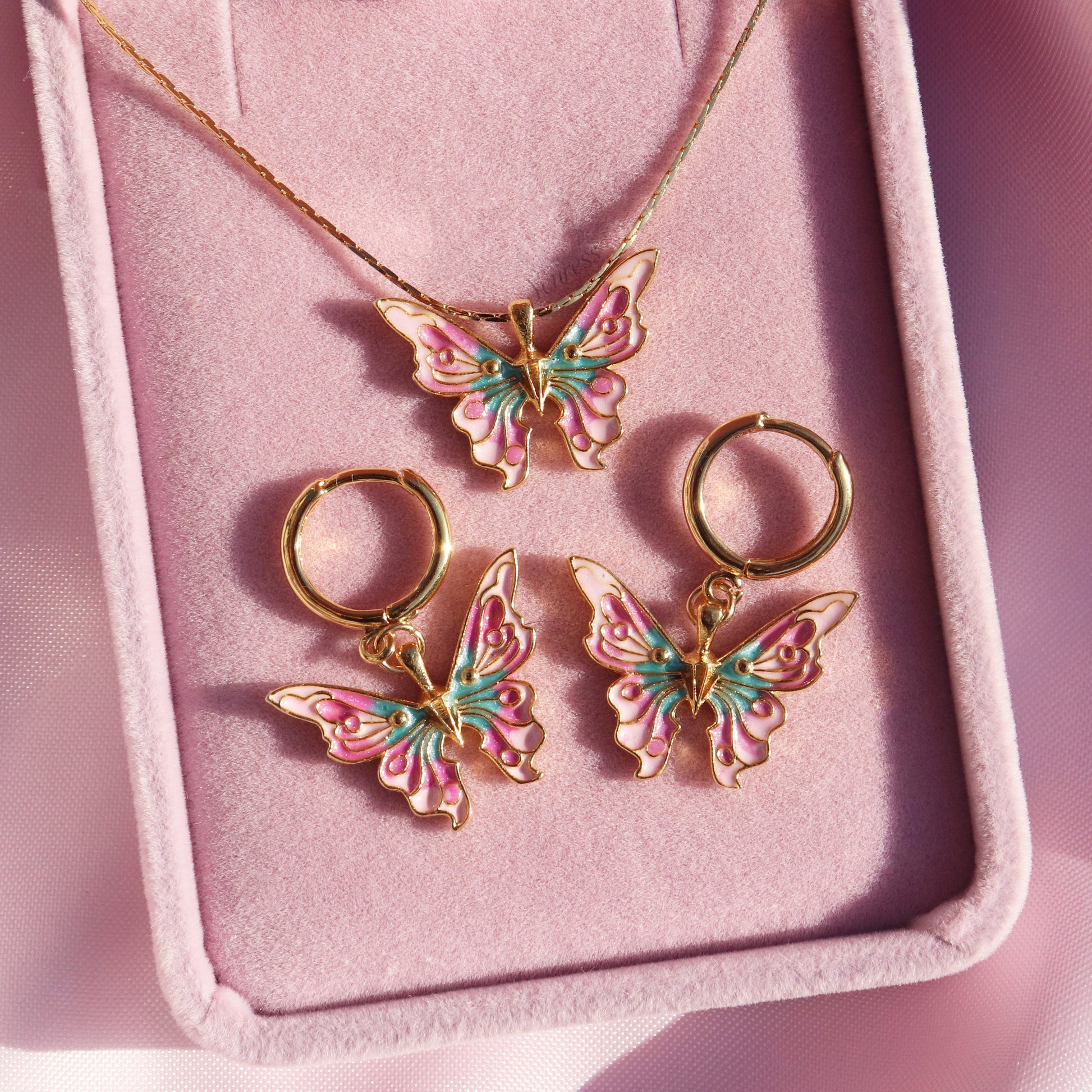🧚♀️ Just like the magical world of Fairies, this jewelry set is designed to capture the essence of enchantment and grace. The exquisite butterfly necklace and earring, adorned with delicate wings that shimmer with a rainbow of colors, just like the wings of Elina herself. This set is a reminder of the magic all around us, echoing Elina's fairy adventures. Wear it to embrace your inner fairy and share your enchanting spirit with the world. It's a tribute to the enchanting world of Fairies, where dreams come true.