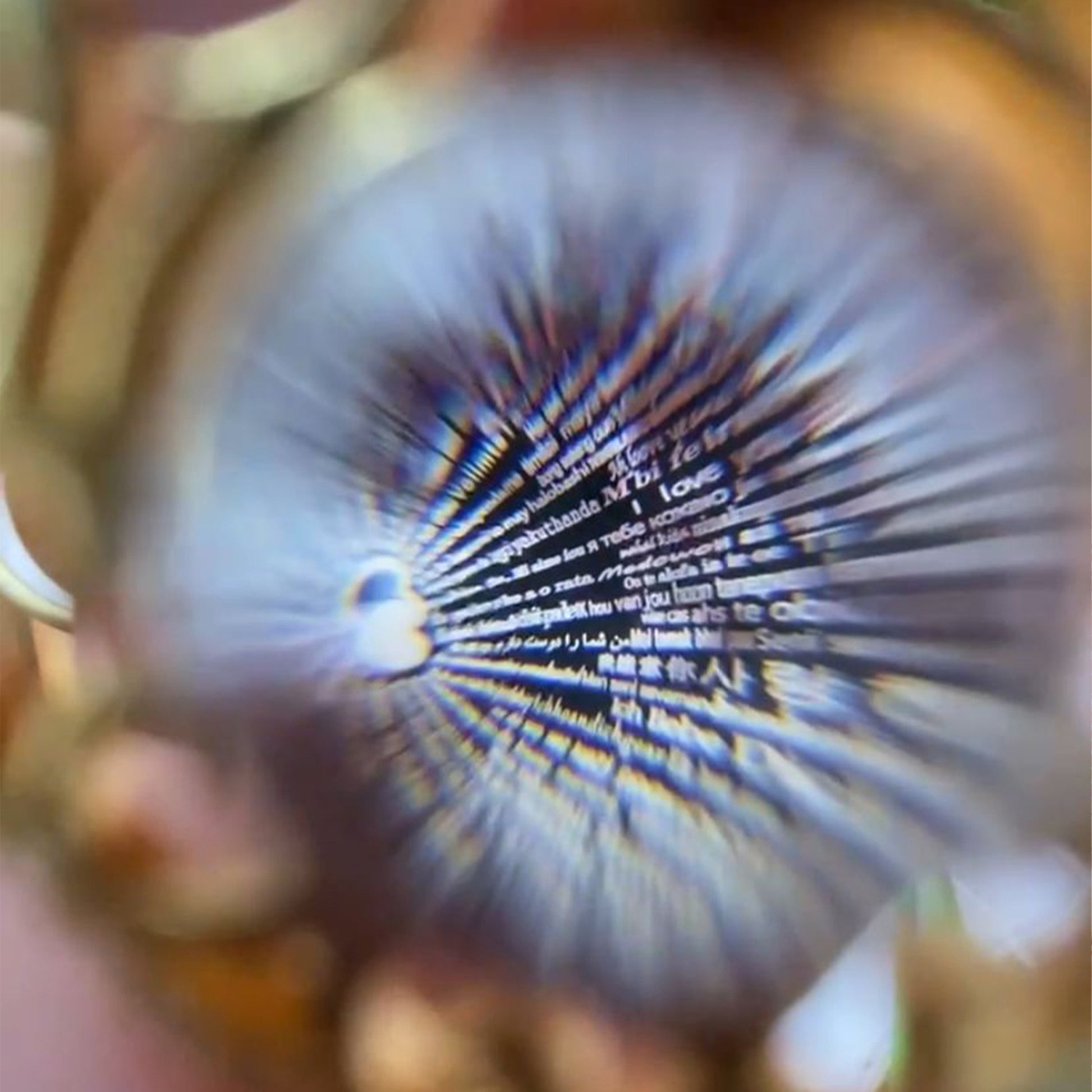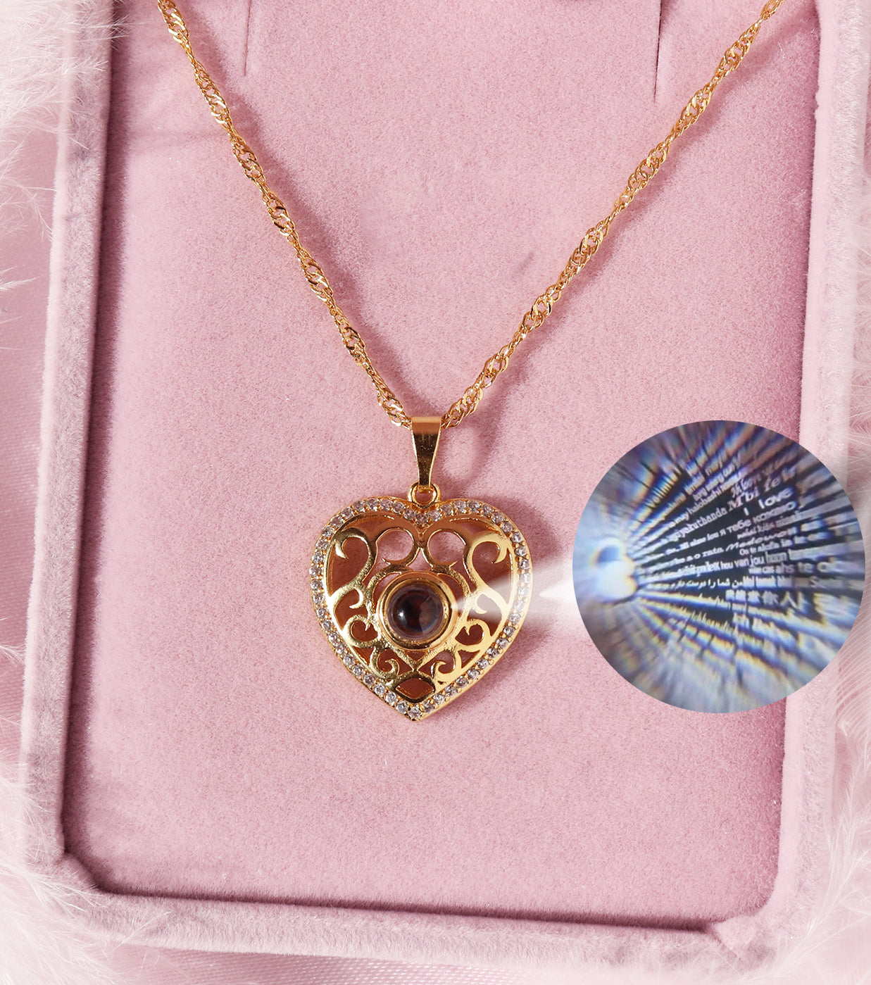 ✨ This unique necklace holds a mysterious surprise within. Inside the sphere lies a lens, and when you look through it, you encounter the phrase "I Love You" in 100 different languages. This necklace universalizes love, offering a perfect way to express your feelings and touch people from all over the world.