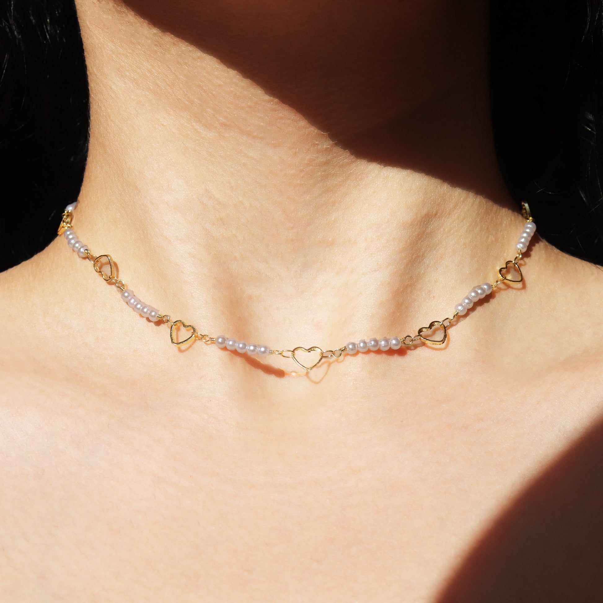 ❤️ With its minimalist design, the Pearl and Heart Chain Bead Necklace effortlessly complements any ensemble, from casual to formal. Wear it as a singular statement or layer it with other necklaces for a unique and stylish look.