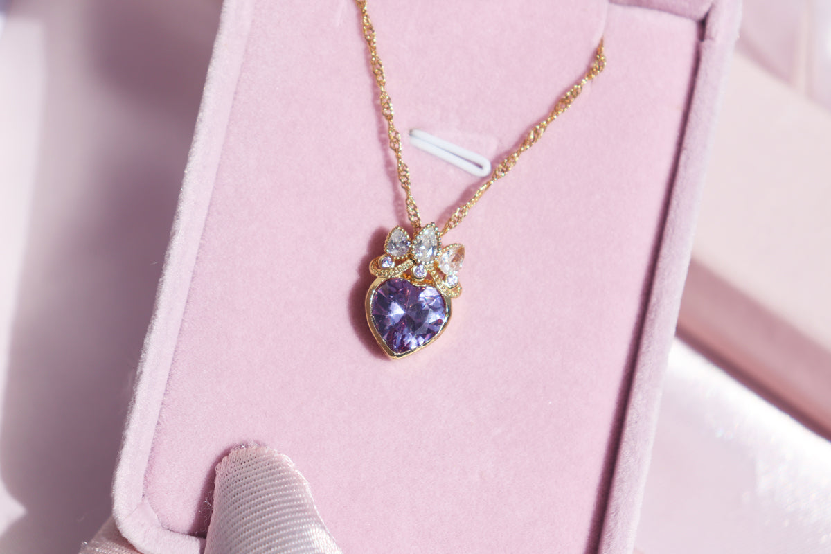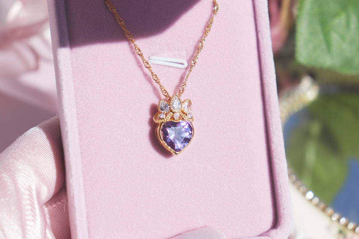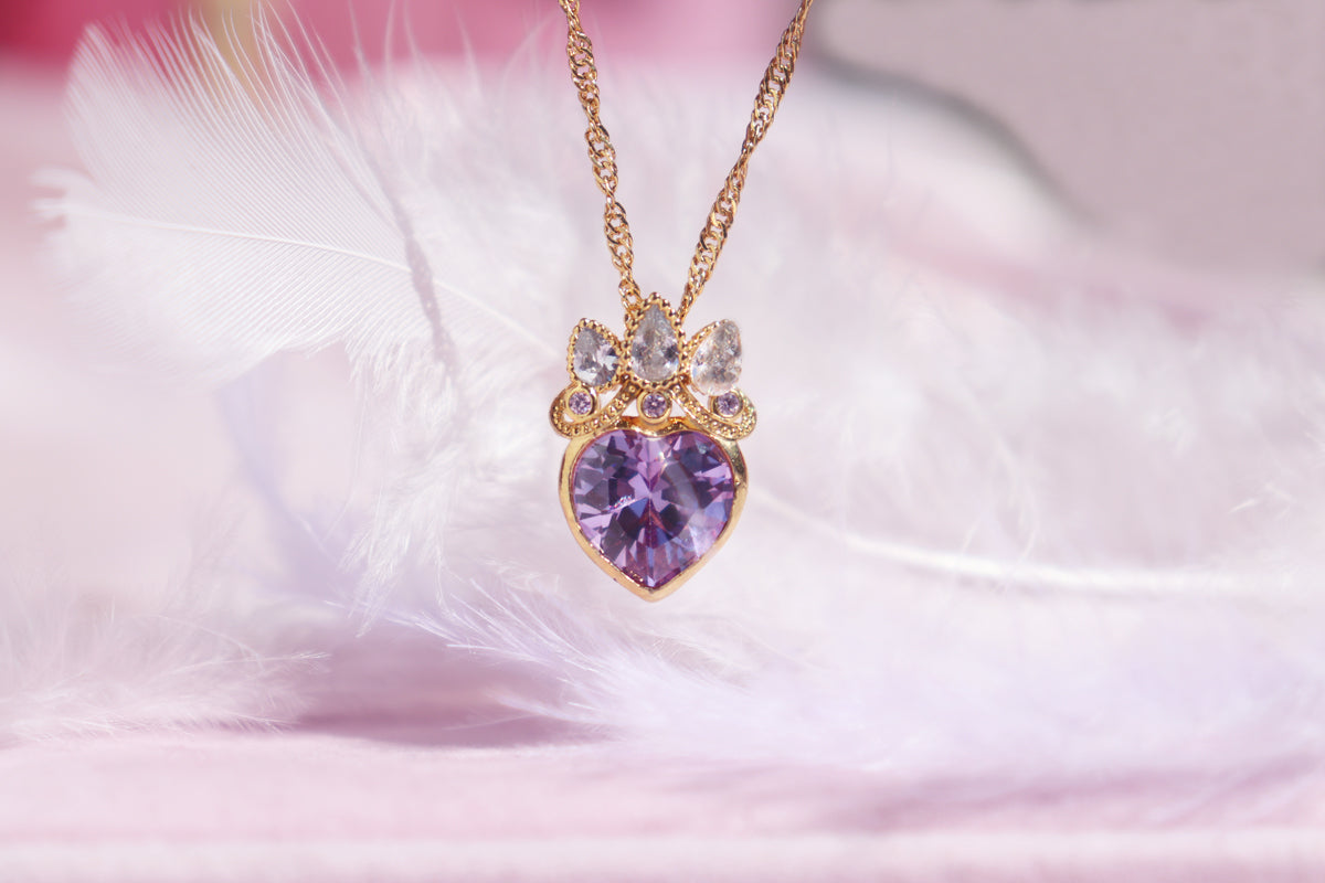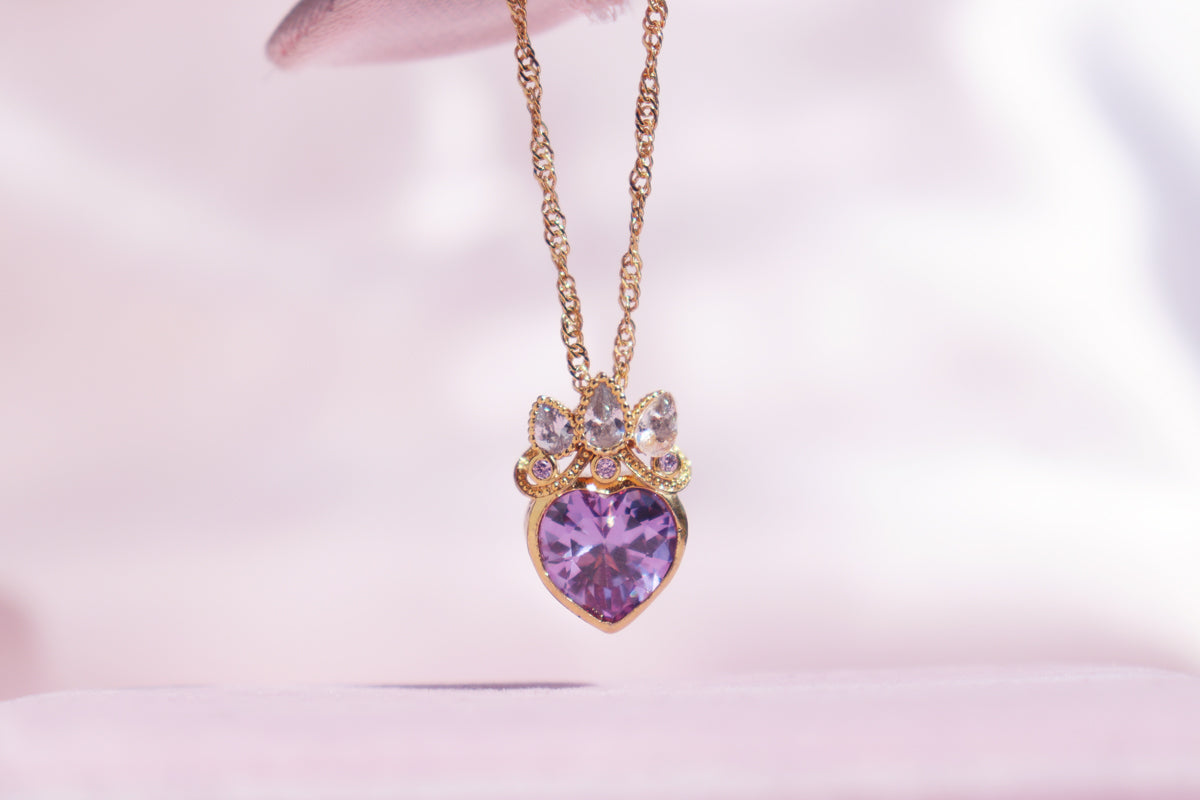 ☀️ This charming necklace is inspired by Rapunzel's magical story. The purple heart stone symbolizes her dream of freedom, while the sparkling crown detail captures her royal spirit. Wear this special piece to add a little fairy tale magic to your everyday moments.