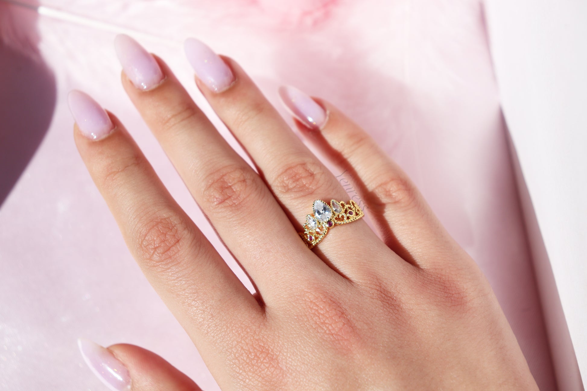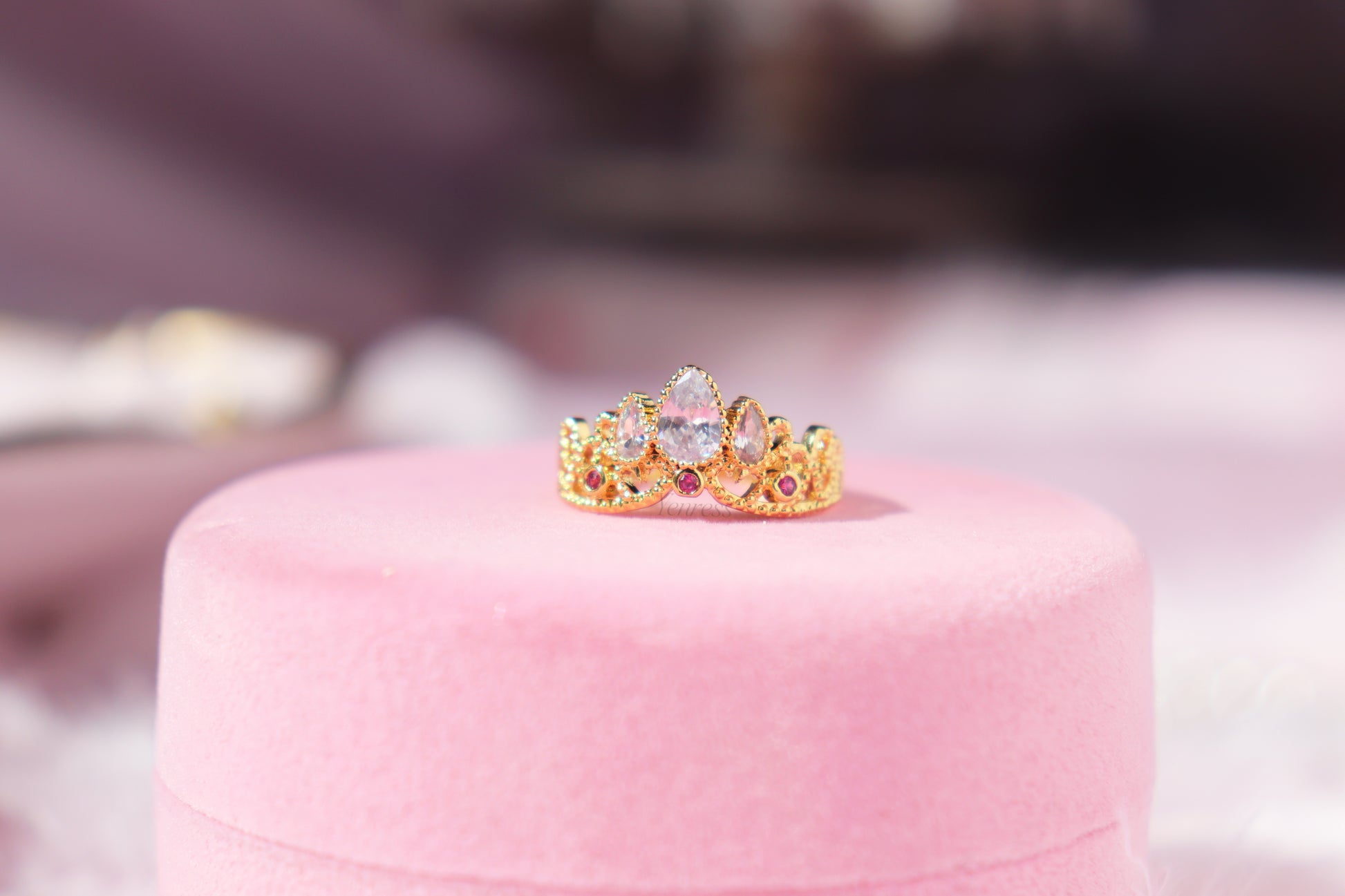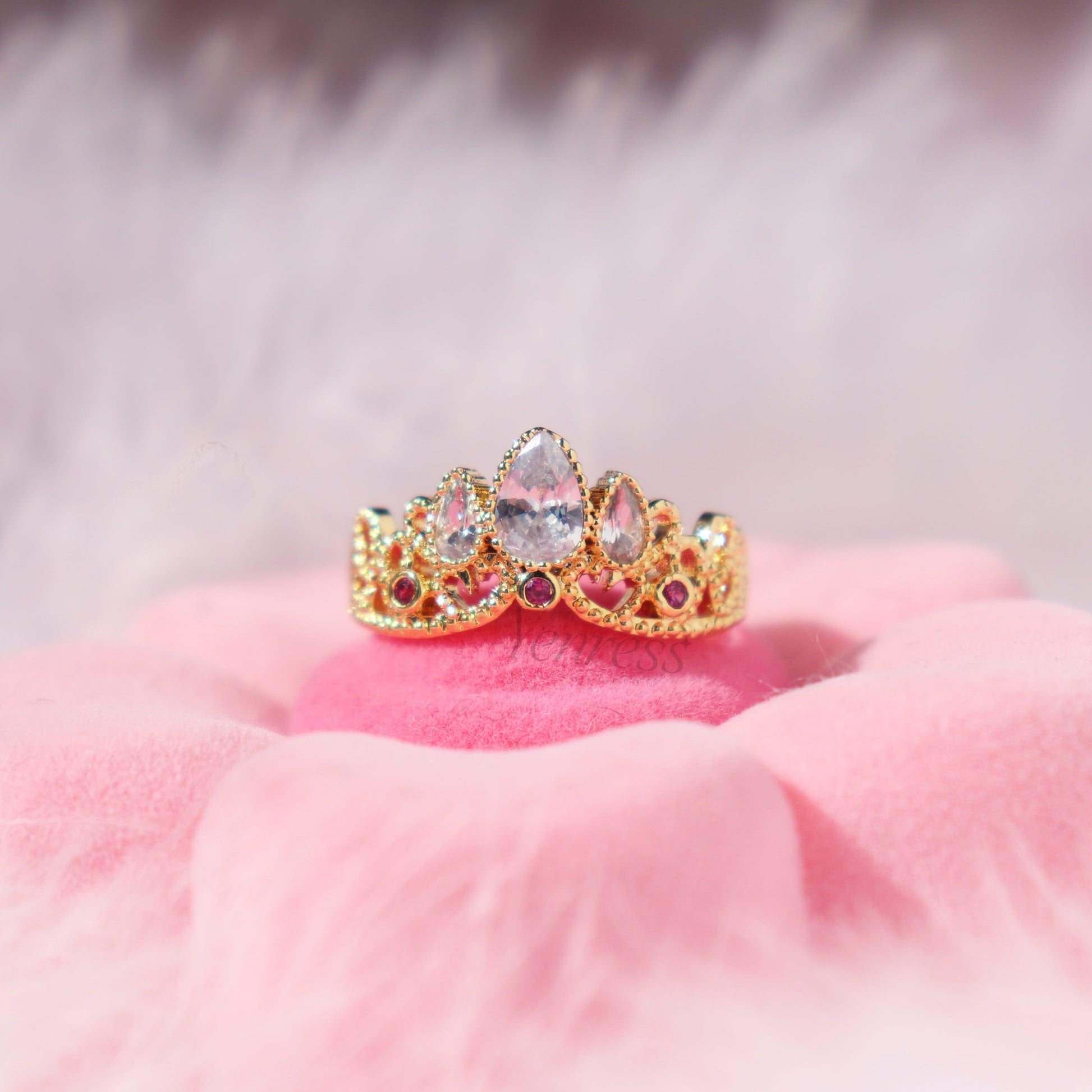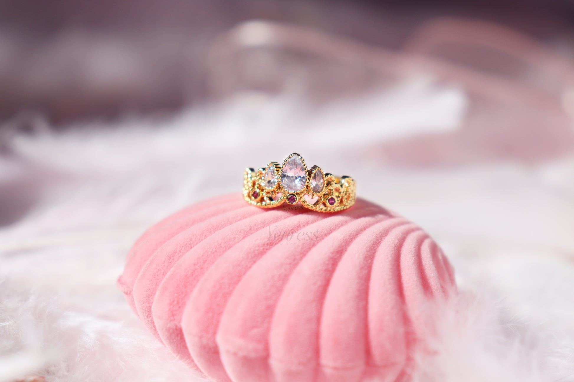 💜 Dream this: a twinkling gem nestled amidst delicate golden hairs, just like princess's radiant crown. It's as if a sprinkle of pixie dust turned into a ring! With every glance, it whispers tales of magical towers and dreams that reach for the stars. Slip it on, and suddenly, you're the star of your very own fairy tale, ready to paint the world with hues of wonder and joy. Let this ring adorn your finger, and watch as it spins spells of enchantment around you, making every moment as magical as a lantern-lit evening in the kingdom of dreams. 🌞💜