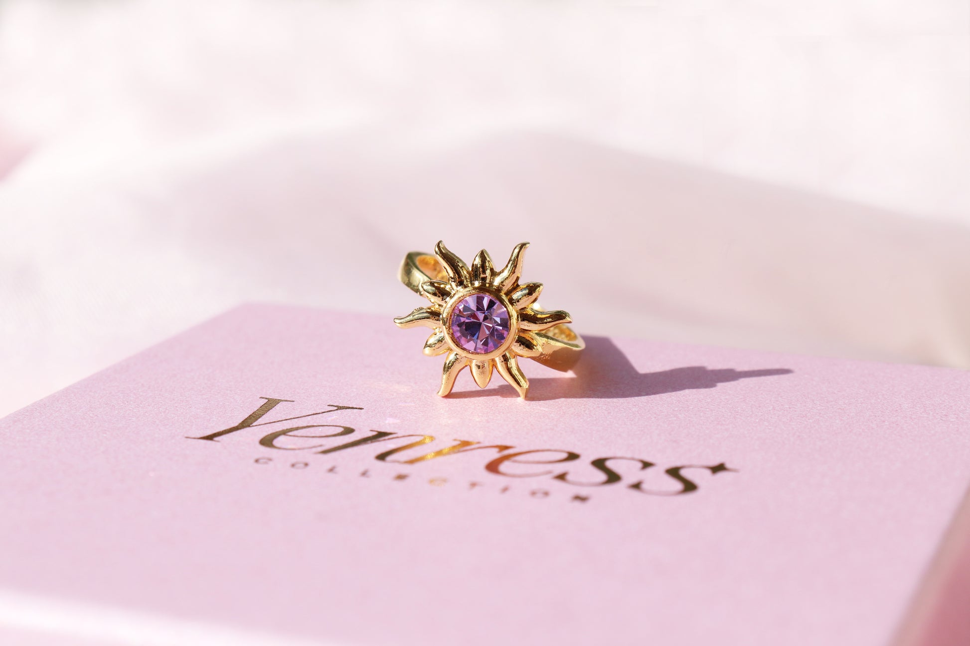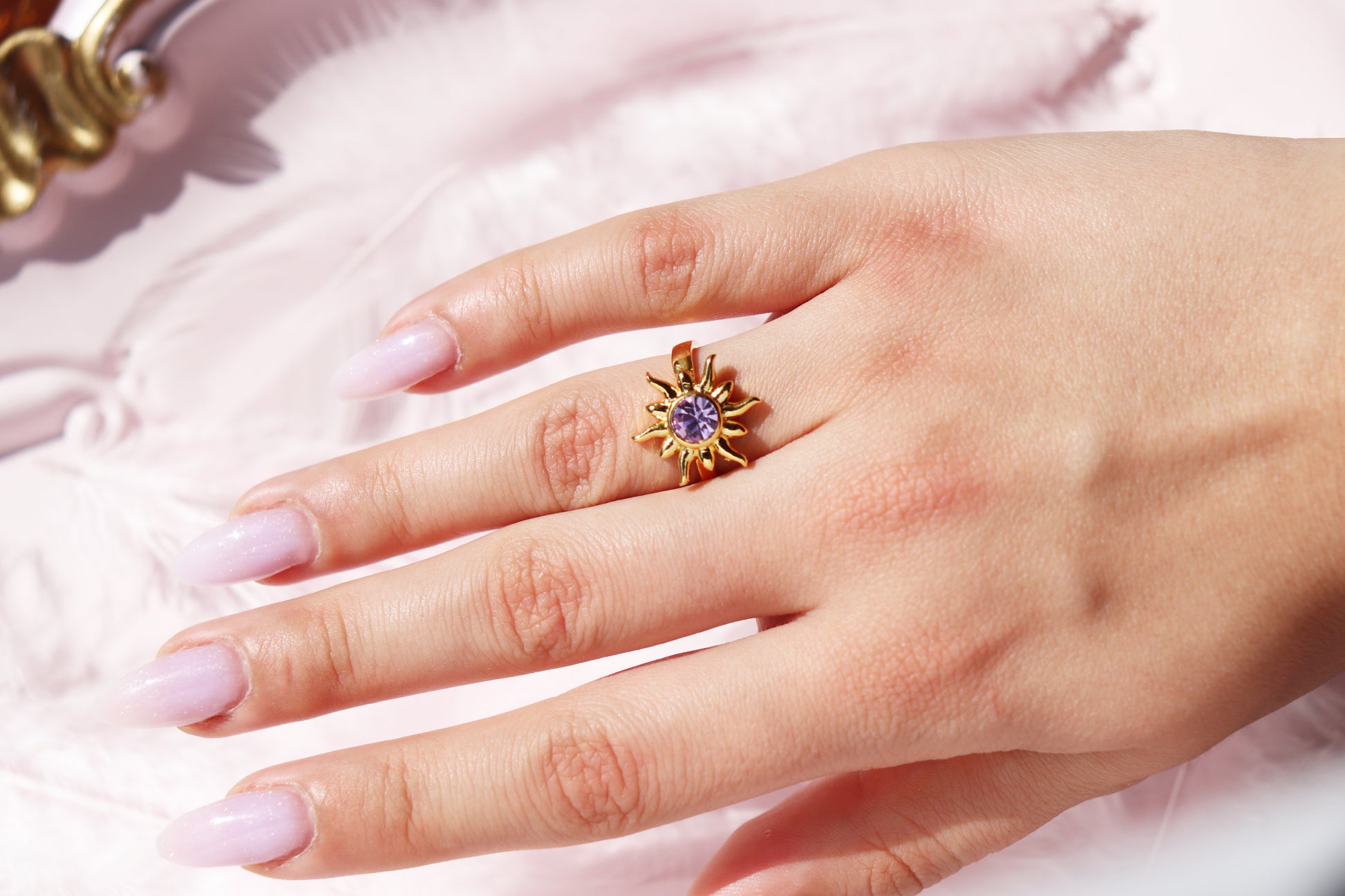 ☀️ Imagine tiny sunbeams transformed into a ring, complete with charming details like sparkling gemstones that twinkle like her joyful spirit. It's the perfect accessory for anyone who believes in the magic of fairy tales and the power of a sunshine-filled smile!