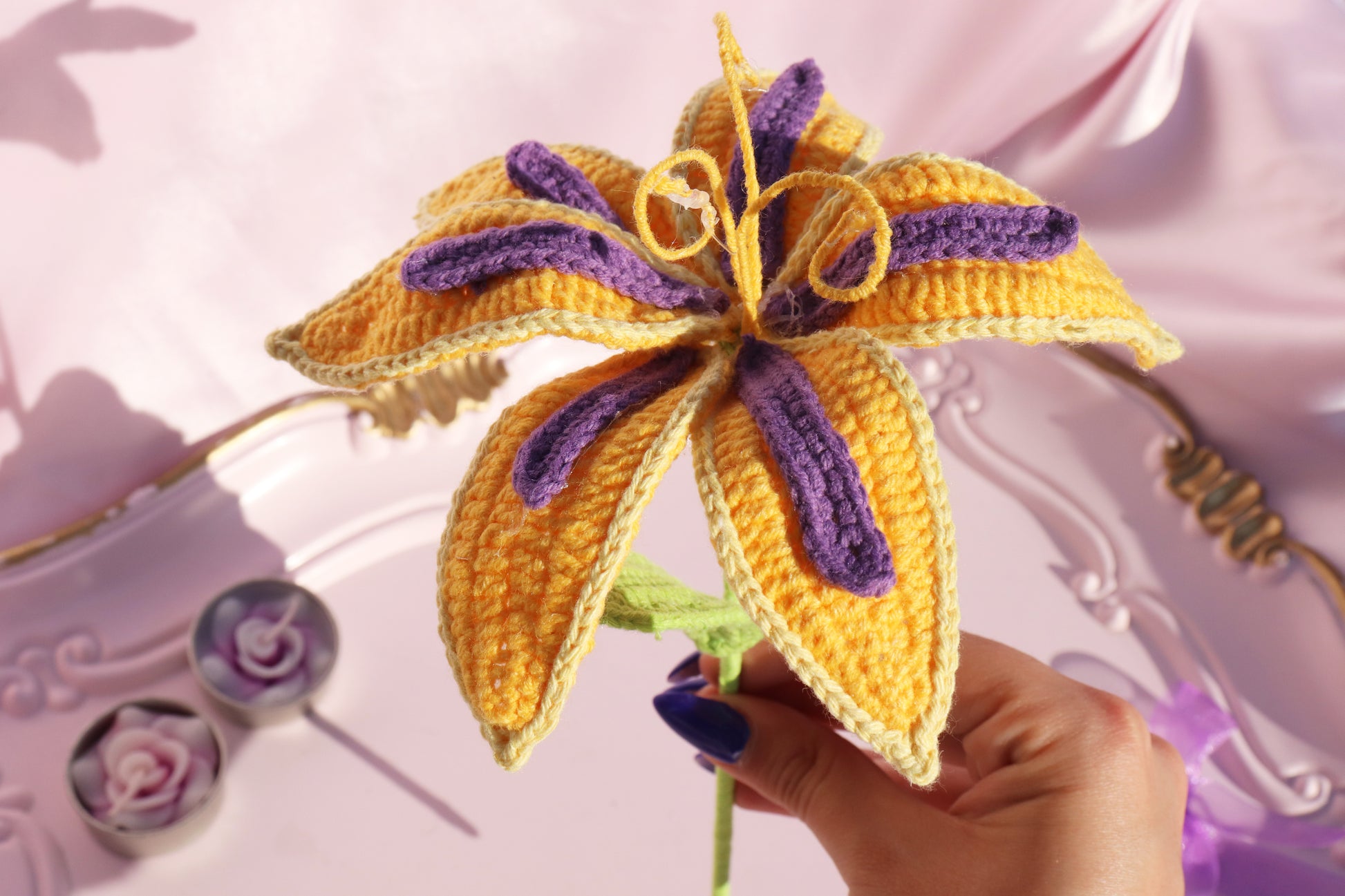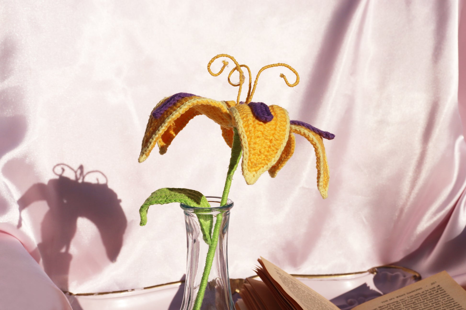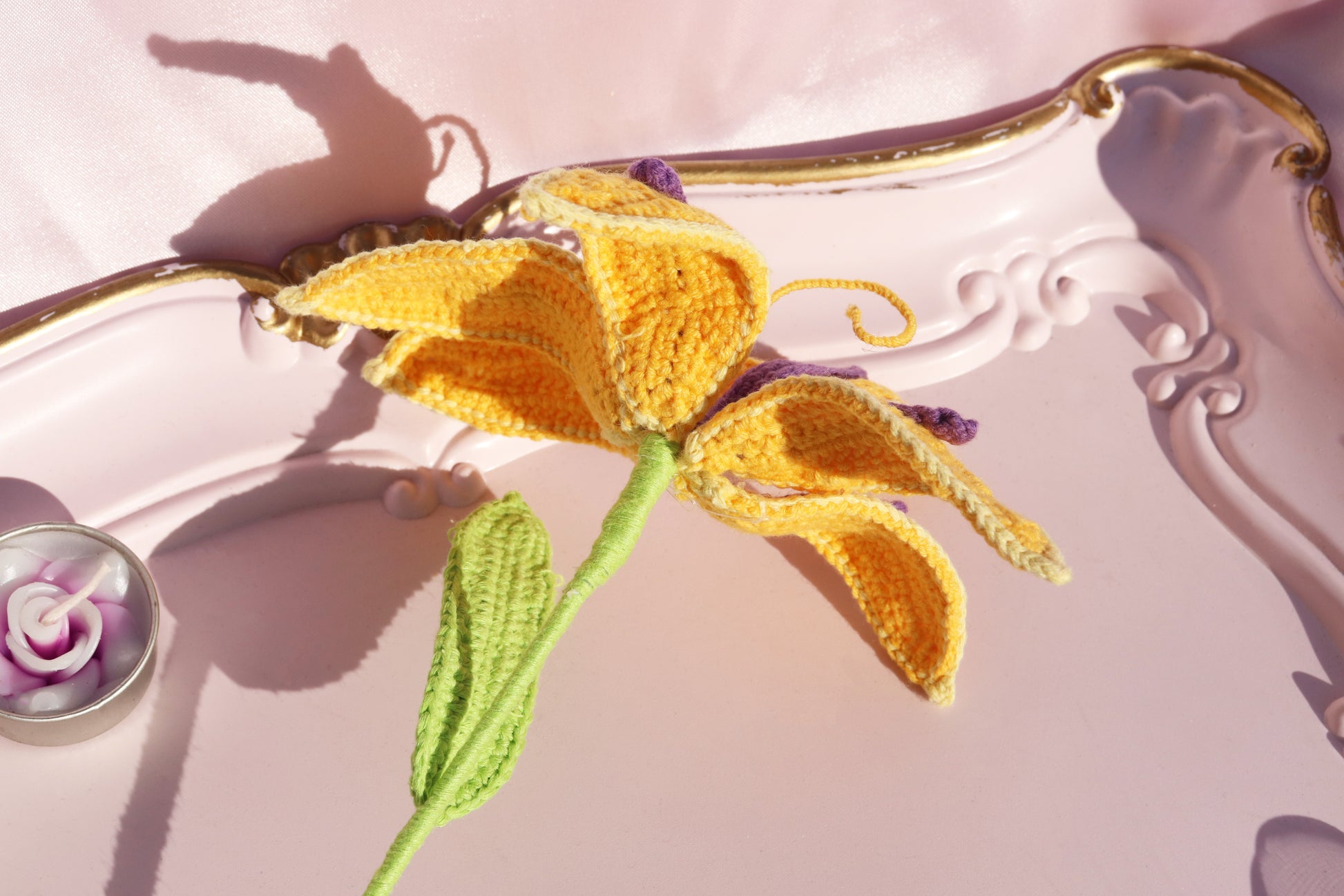💜 In Rapunzel's tower, there was a legend that whispered of the special powers of the Sundrop Flower. It was believed that the magic of this flower bestowed light and vitality upon the tower it inhabited. Drawing inspiration from the enchanting world of Rapunzel, We've captured the magic of the Sundrop Flower through the art of knitting. This unique flower brings the charm of the fairy tale into your home!