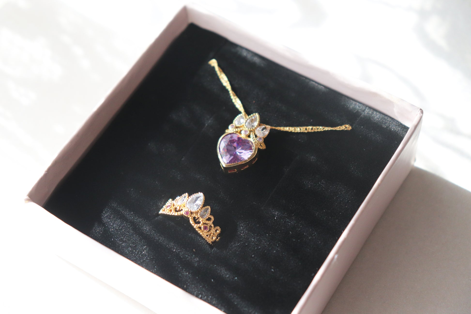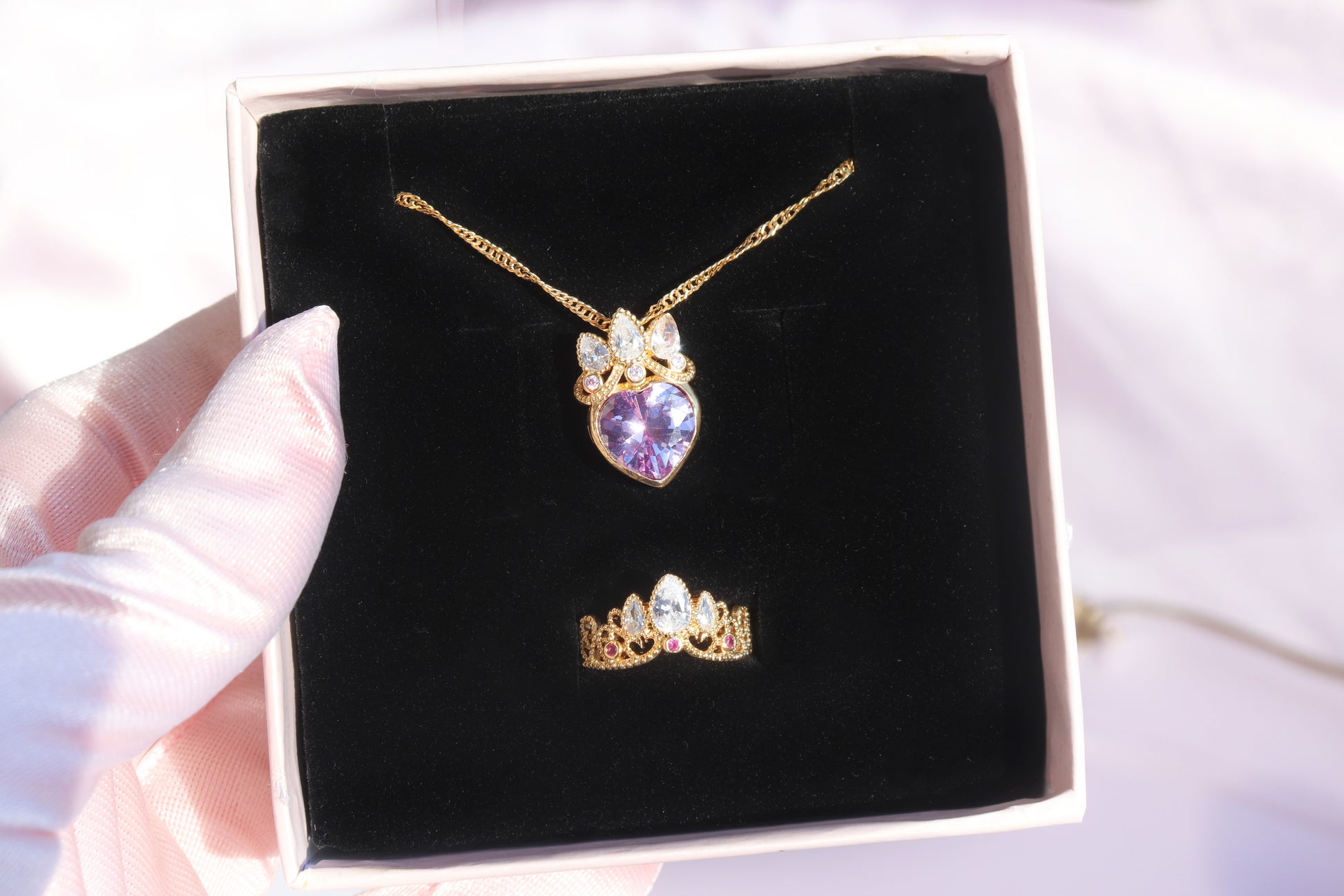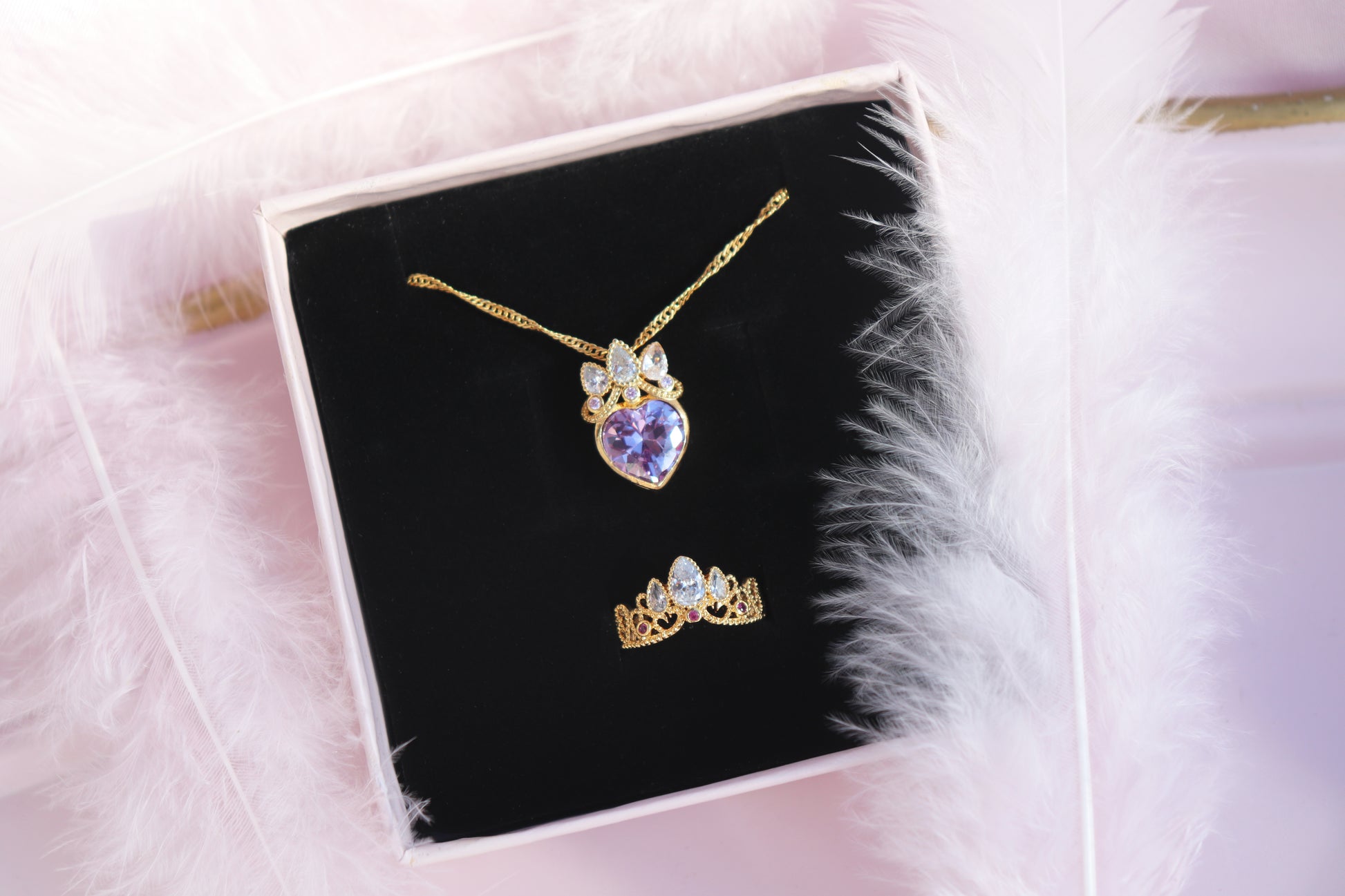 💜☀️ The Rapunzel Set shines with the magic of her journey to self-discovery. A radiant purple gem, like the lanterns of her dreams, glows with courage and hope. Encircled by golden crown, it carries the secret of healing. Let this set light your way, as Rapunzel’s lanterns guided her to her destiny.