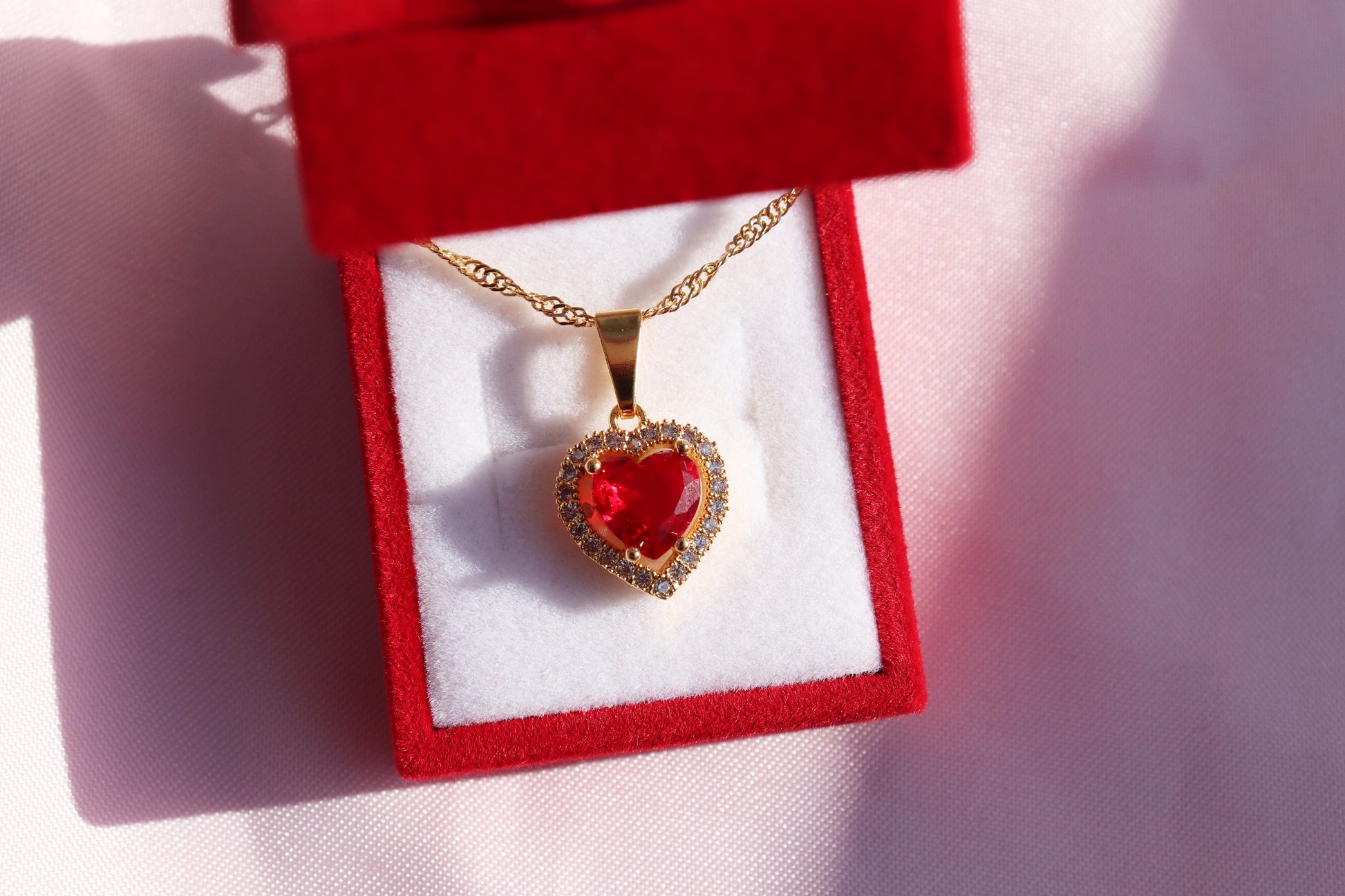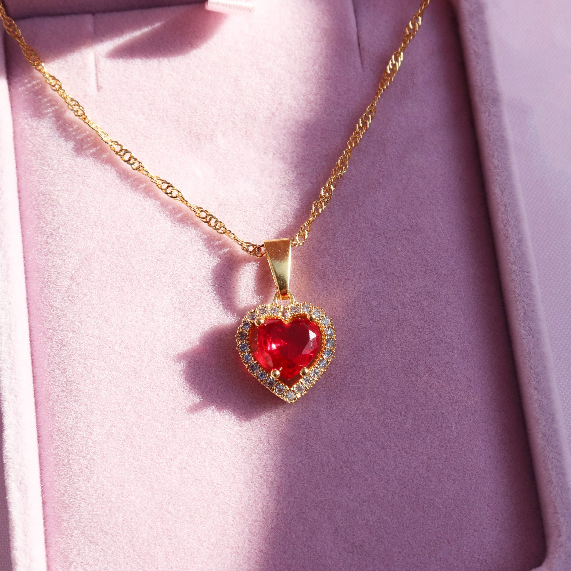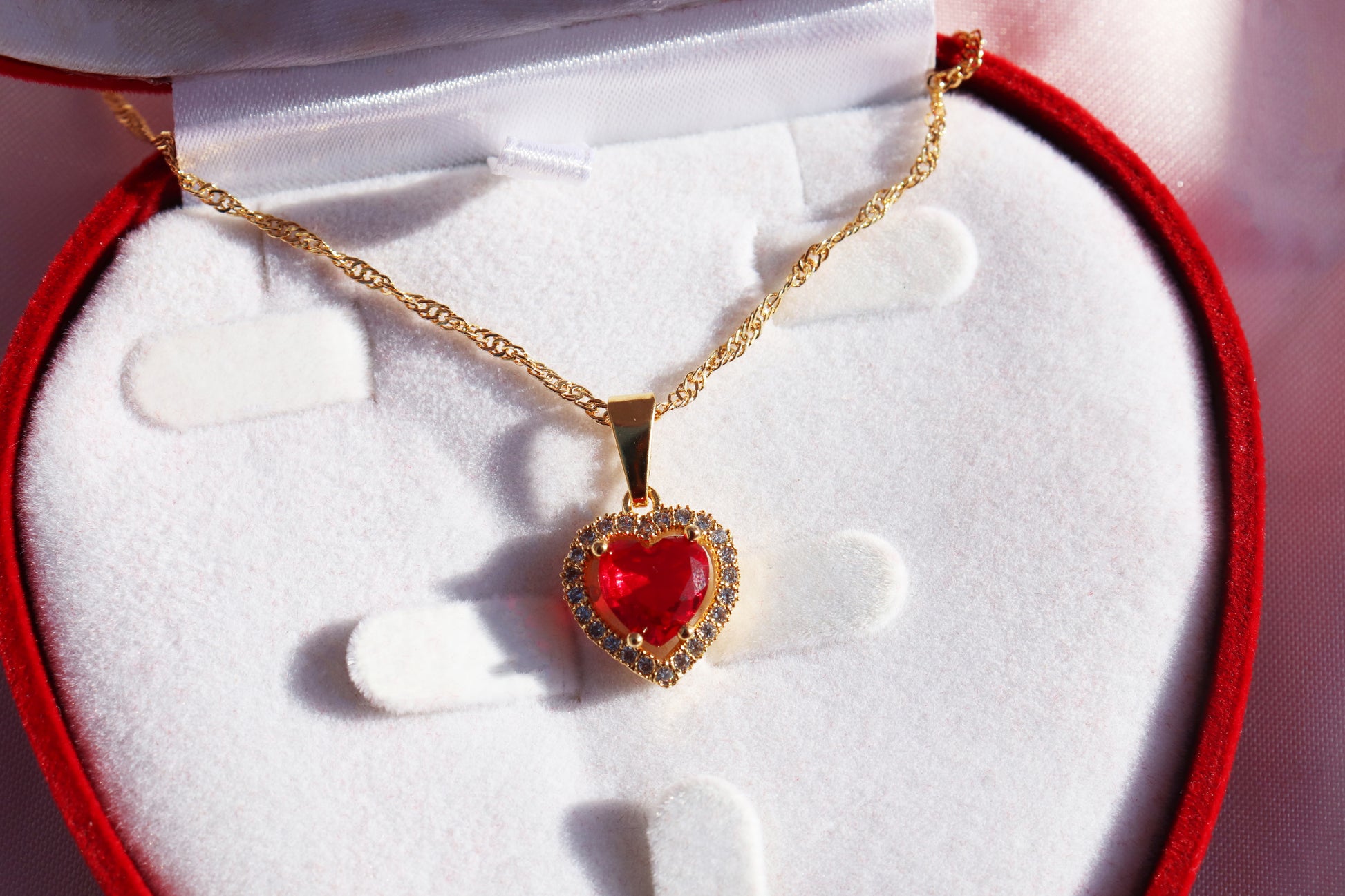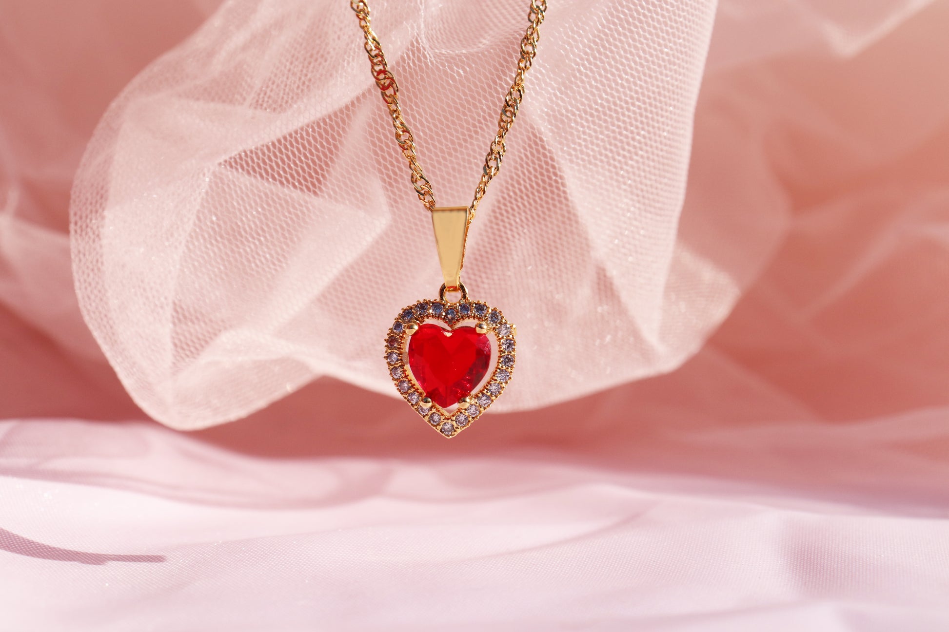 ❤️ Unlock the romantic allure of Lana's signature style with the exquisite Red Heart Necklace, a captivating piece that embodies both elegance and passion.