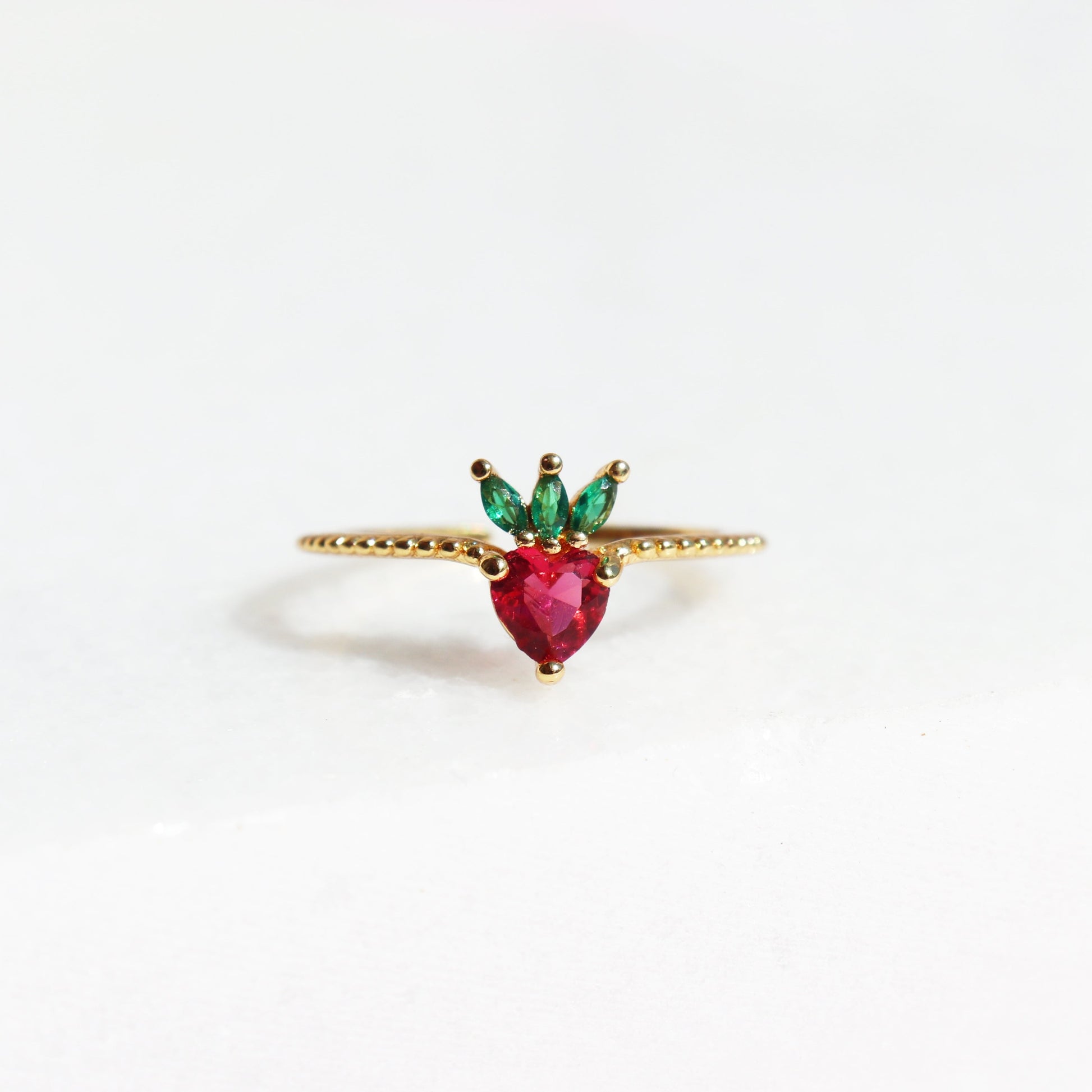 🍓 Discover the essence of sweetness and simplicity with our Minimal Strawberry Ring. Delicately crafted to capture the charm of a ripe strawberry, this ring brings a touch of whimsy to your everyday style. Adorn your finger with the playful elegance of the Minimal Strawberry Ring and let your style blossom with a hint of nature's sweetness.