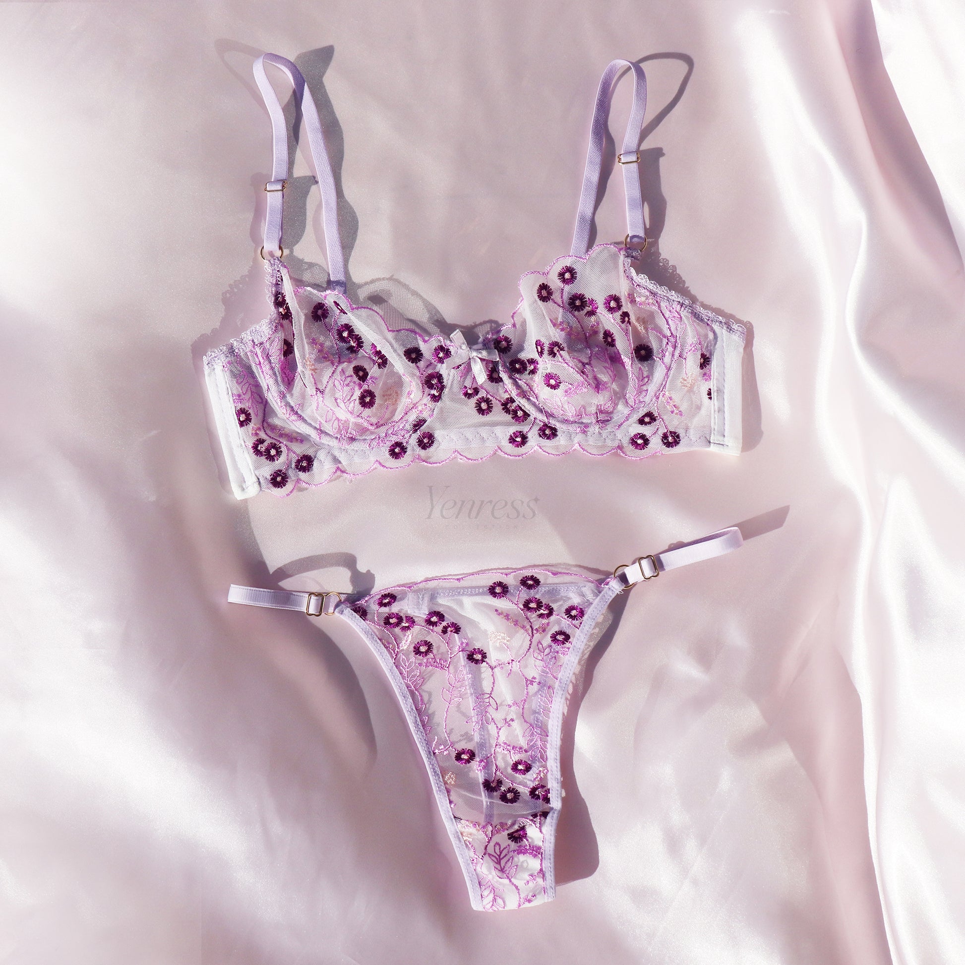 • This luxurious and sexy bra set includes 1 bra with soft cups, a clasp closure, and adjustable spaghetti straps, paired with matching panties featuring a thong cut back, designed to accentuate your curves.
